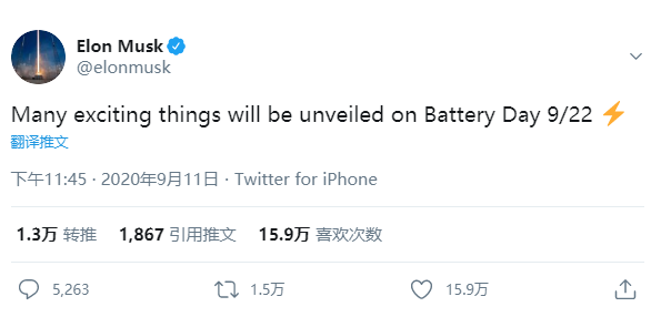 马斯克曝重大猛料,9月22日电池日见