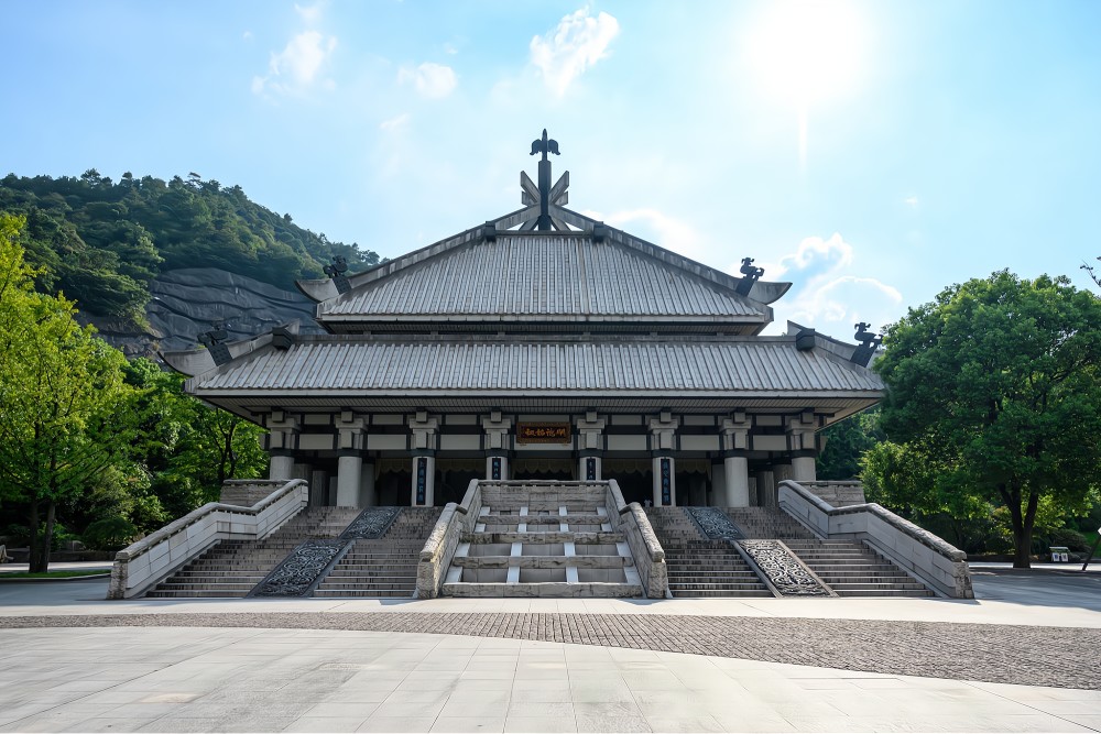 在上虞中华孝德园中有一座“大舜庙”,大舜庙是祭祀“明德始祖”舜帝的场所,其建筑造型大气磅礴,看起来格外的硬朗,为典型的秦汉时期的建筑风格。中华孝德园是上虞最著名的旅游景点,到上虞必打卡的景点,景区内还有亚洲最大的舜耕群雕,雕塑群恢弘大气,让人流连忘返。