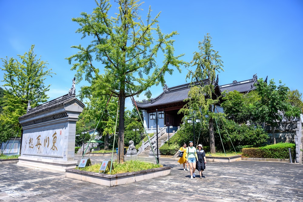 提到谢安,很多人可能会想到一个成语,即“东山再起”,这个成语的发源地就是在这里当年谢安辞官隐居这里,后来因国家遇到被前秦欺负的危险而东山再起,重新为国争锋,在东山圣境的太傅祠前有一块照壁,上面可以看到“东山再起”四个大字。