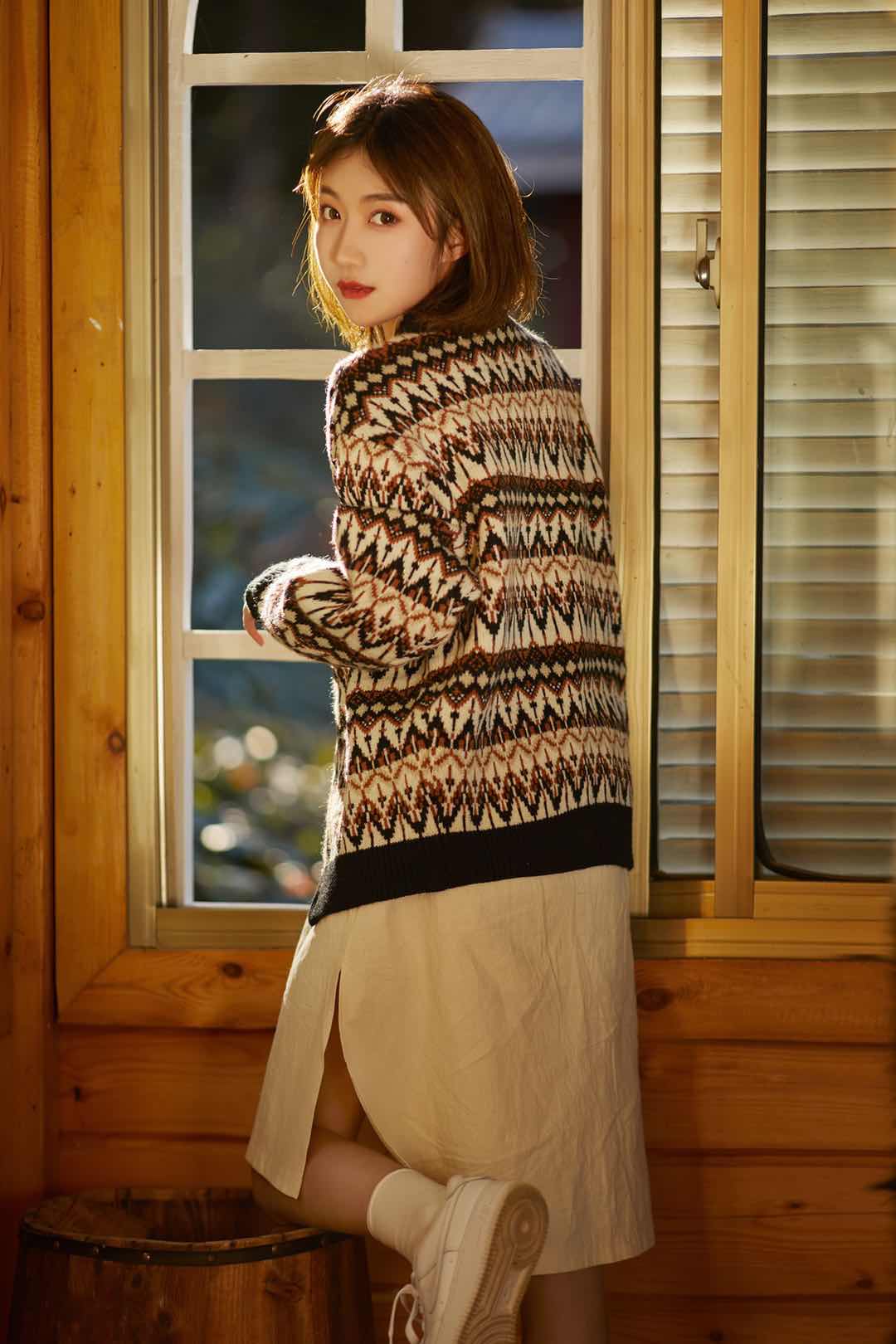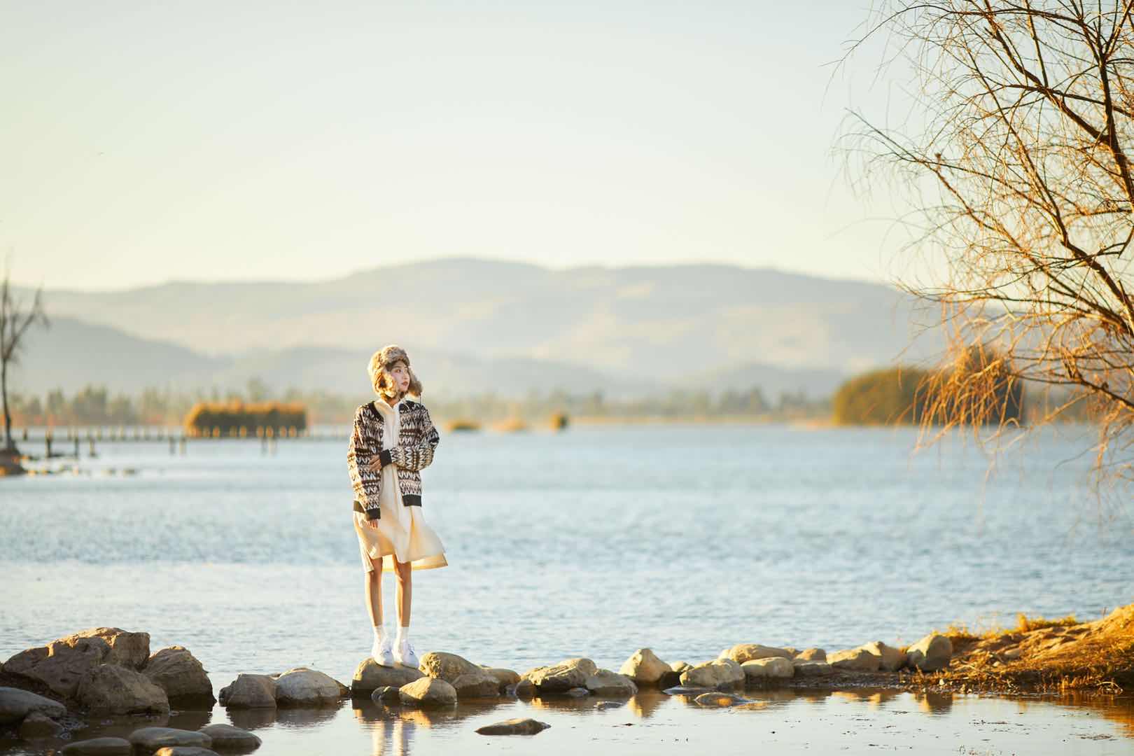 对于中景来说,一般以人物上半身裁到膝盖上下的位置,也可以是到大腿围,这类景别以中心构图和对角线构图最多,当然以中景构图时,注意人物不要把画面占满,适当的留白营造清新和日系感。此外,35头拍中景效果更好。