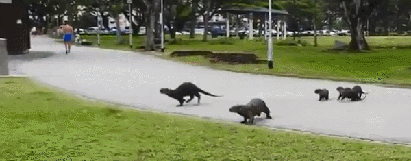 水獭跑步的姿势是连跑带蹦。图片:Fast Snail / youtube