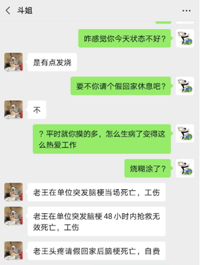 老王坚持在单位蹭工伤,死了。