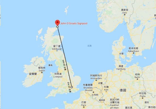 红点是英国最北的天涯海角,距离伦敦大本钟直线500公里
