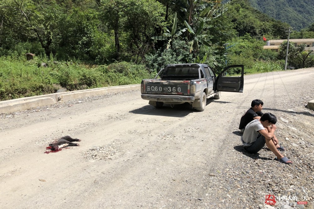 当车辆从身边经过时,我高喊在路边的小黑不要动。但小黑就好像被人用绳子牵着,径直走向皮卡车的左前轮,瞬间倒下了。
