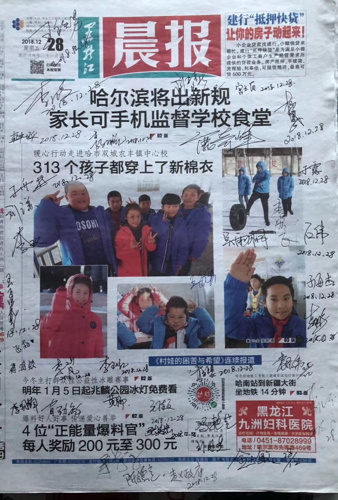 2018年最后一期晨报部分采编人员签名。当年,新中国第一张晨报死啦!