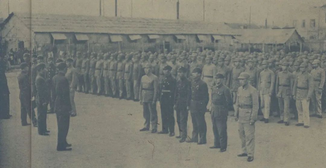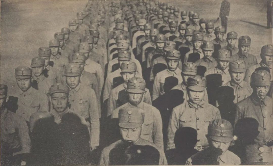 ▼1940年孤军营运动会开始前,谢晋元率全体士兵向牺牲同袍鞠躬哀悼