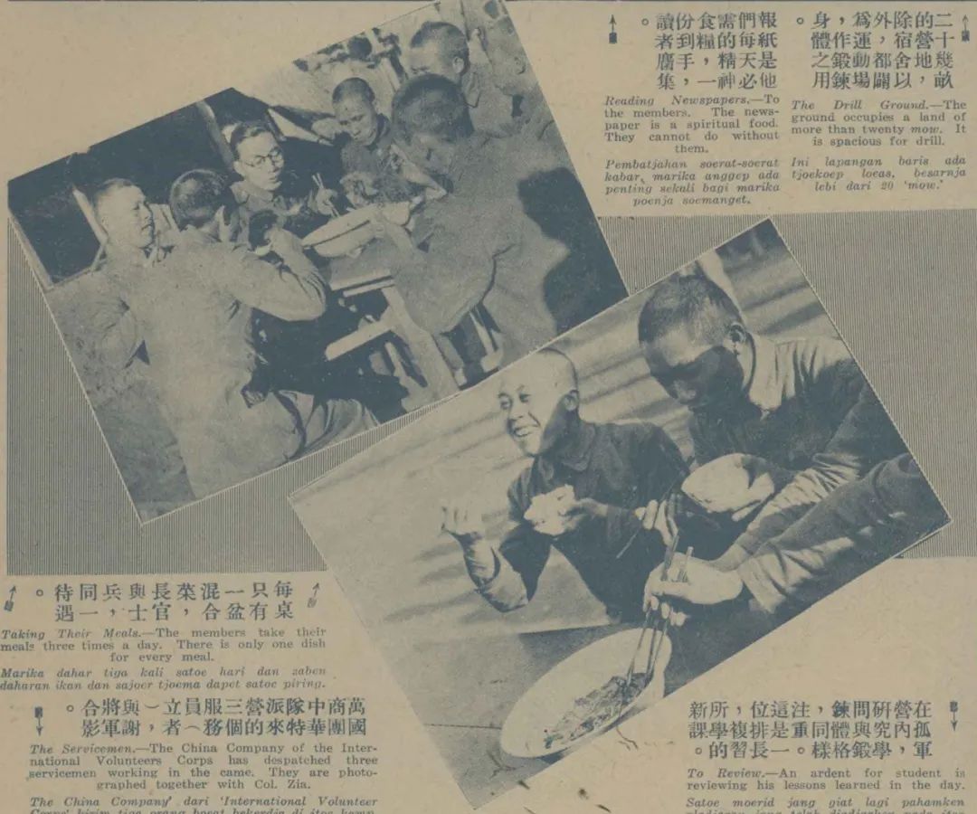 ▼孤军营内的饮食:每桌一个大盆菜,官兵待遇一致