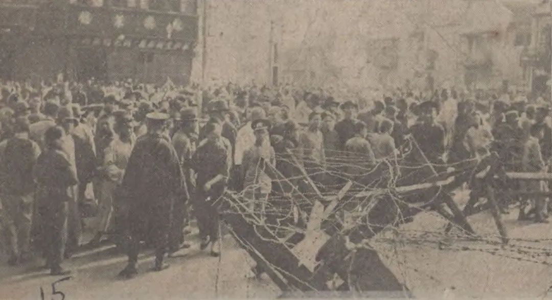 ▼孤军退出四行仓库后,被载往胶州路兵营,民众上街群聚慰问