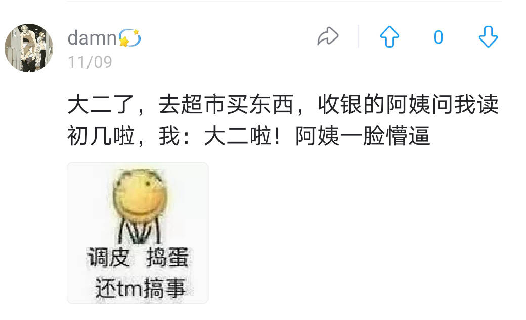 我:大二啦!阿姨一脸懵逼