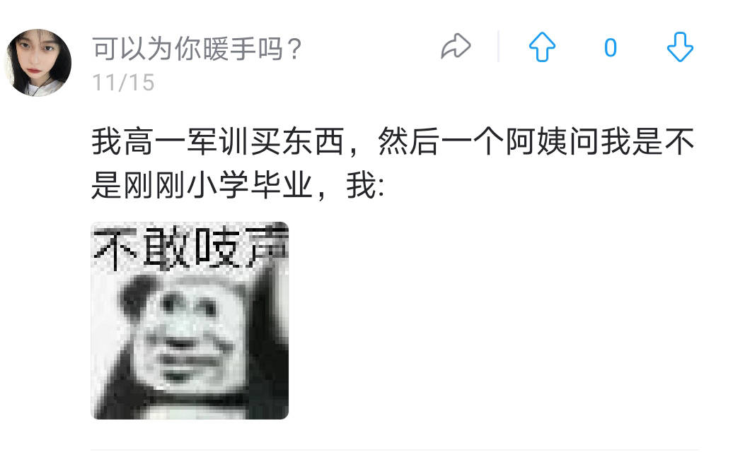 然后一个阿姨问我是不是刚刚小学毕业,我?