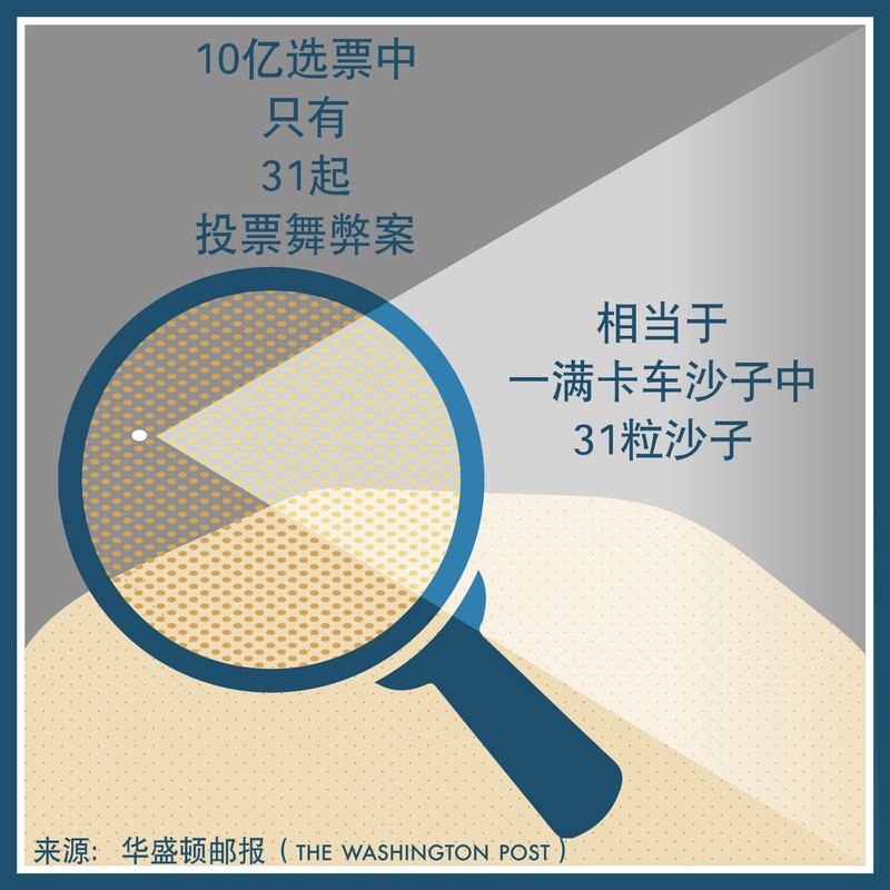 堪萨斯州(Kansas)一位州务卿检查了22州投下的8400万张选票,仅发现14个被提交起诉的造假案例,即比例为0.00000017%。