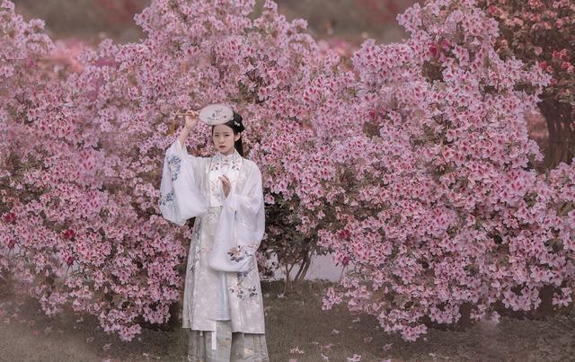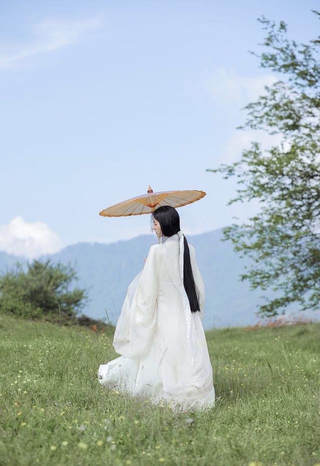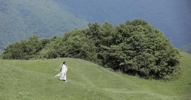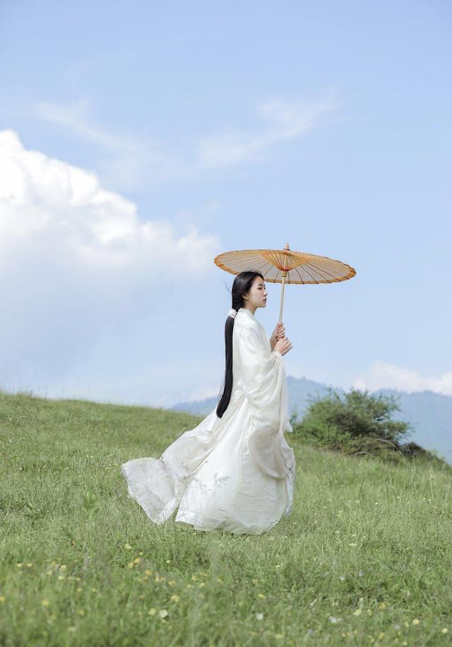 不管是近景、中景还是远景,在古风的摄影中都很常用,像在花海或者草地等拍摄场景中进行拍摄,不妨以远景来表现场地的辽阔和气势,像下面的女生一样,自然地站在画面中,用美美的景色来突出自己,也是仙气满满的。