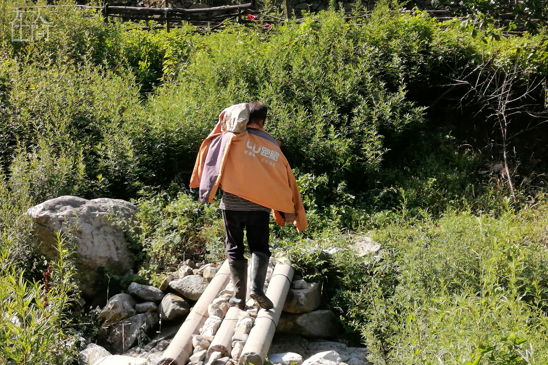 王龙小学的校长退休后在山村打零工,往河对面扛石头修水井。