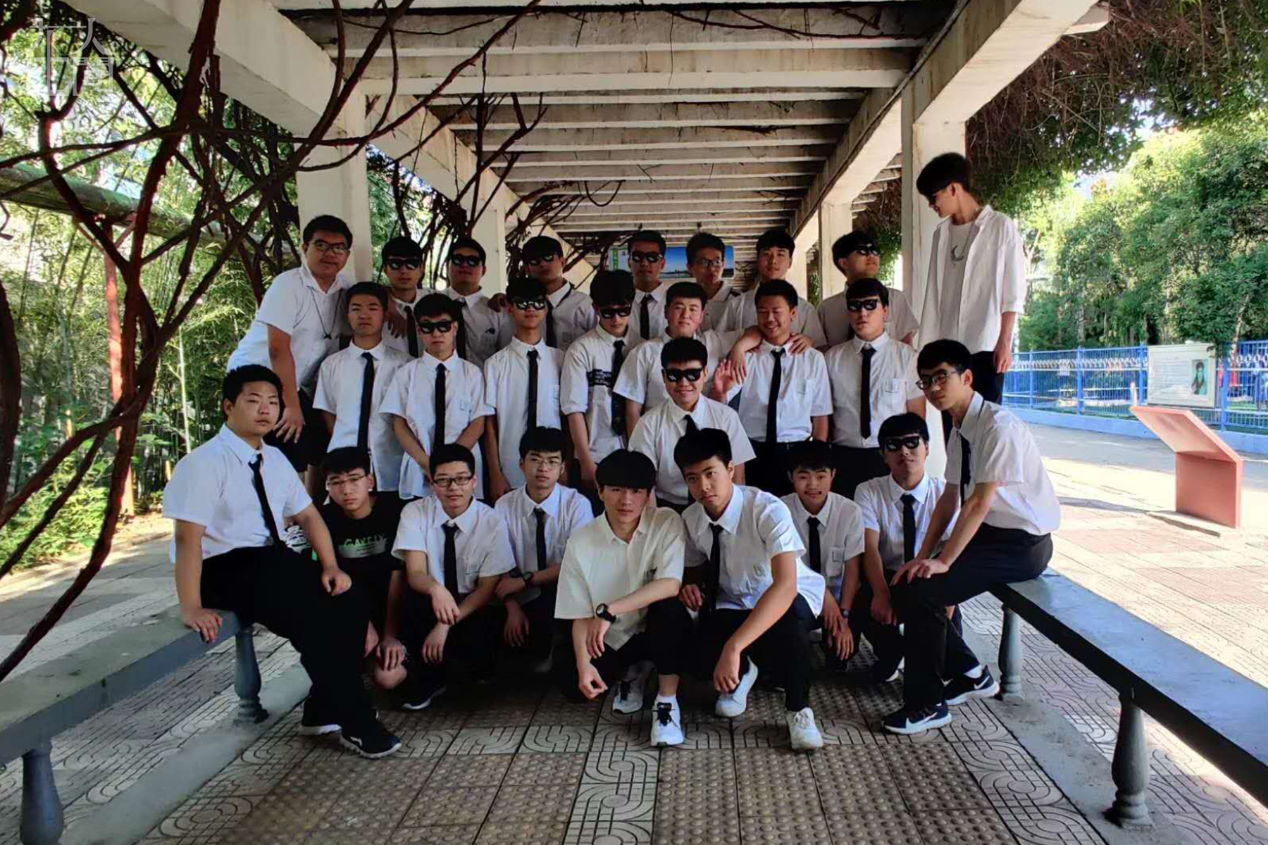 王龙所在班级男生的毕业合照。倒数二排右一为王龙。