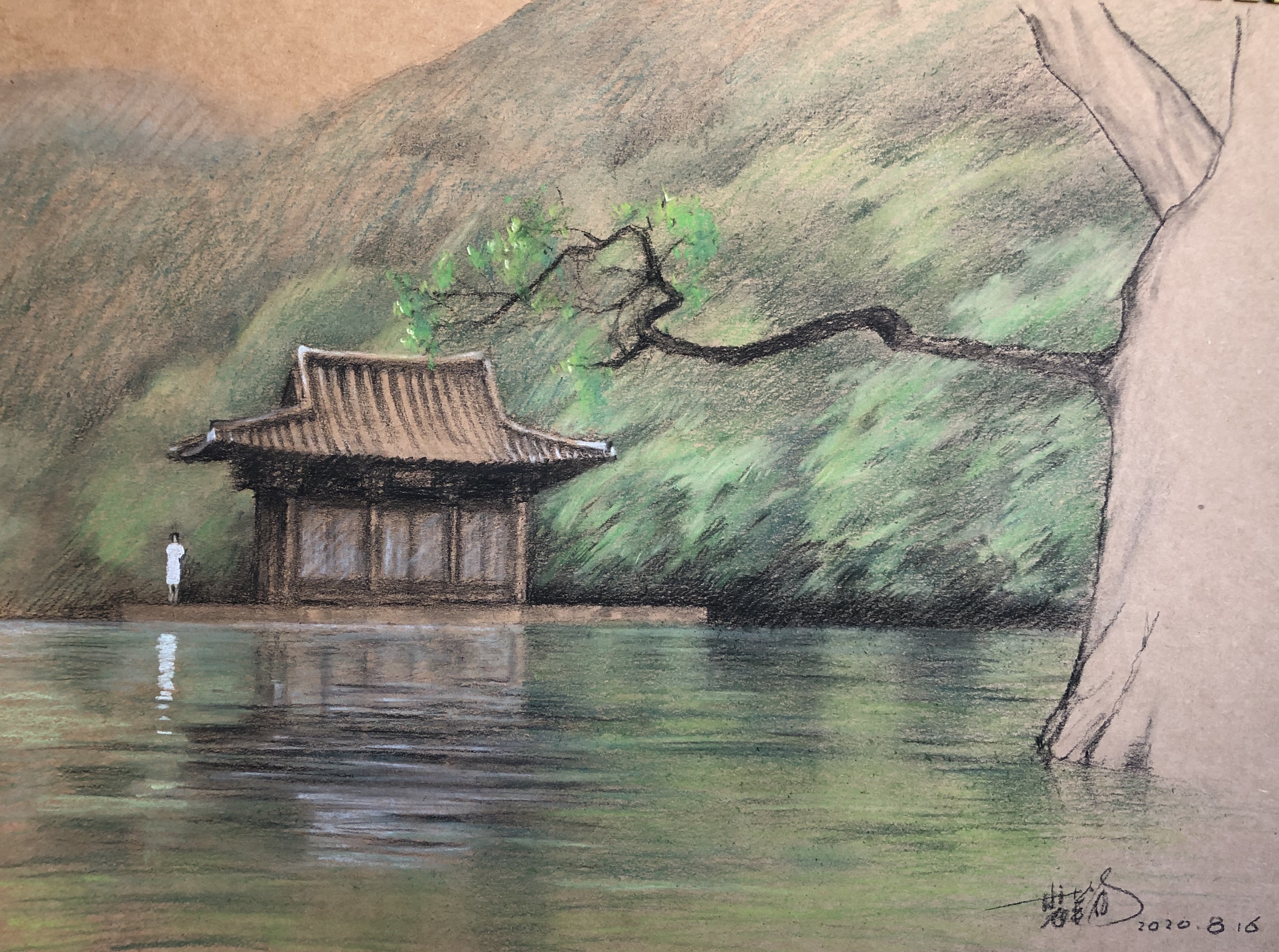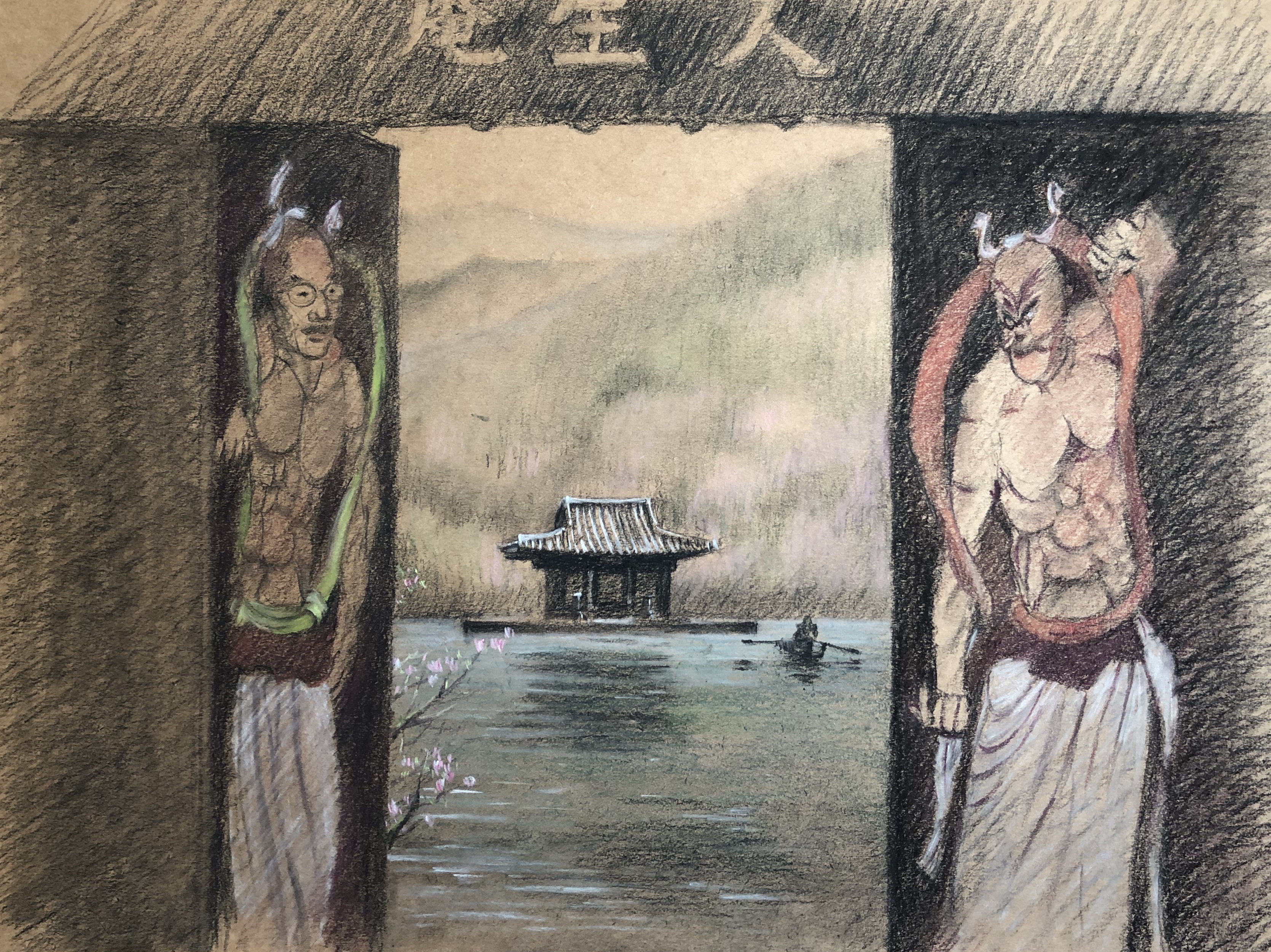 于我而言,本片最大的触点在于开场:山门徐徐打开,现出水面漂浮的庙庵,恍若隔世。三十多年前的大学时代,我曾在一个博物馆的设计中运用过类似手法,在体量组合的过程中,我将其现当代展区和历史展区分别置于一条河道的两端,汛期来临时,大水漫堤,阻隔了两者的交通,此时从现当代向历史过渡就需要一叶扁舟……在对整体的解构、挪移、撕裂之后,它们之间的场域张力反而增强了。这就是叙事过程中绝佳的场所语境。