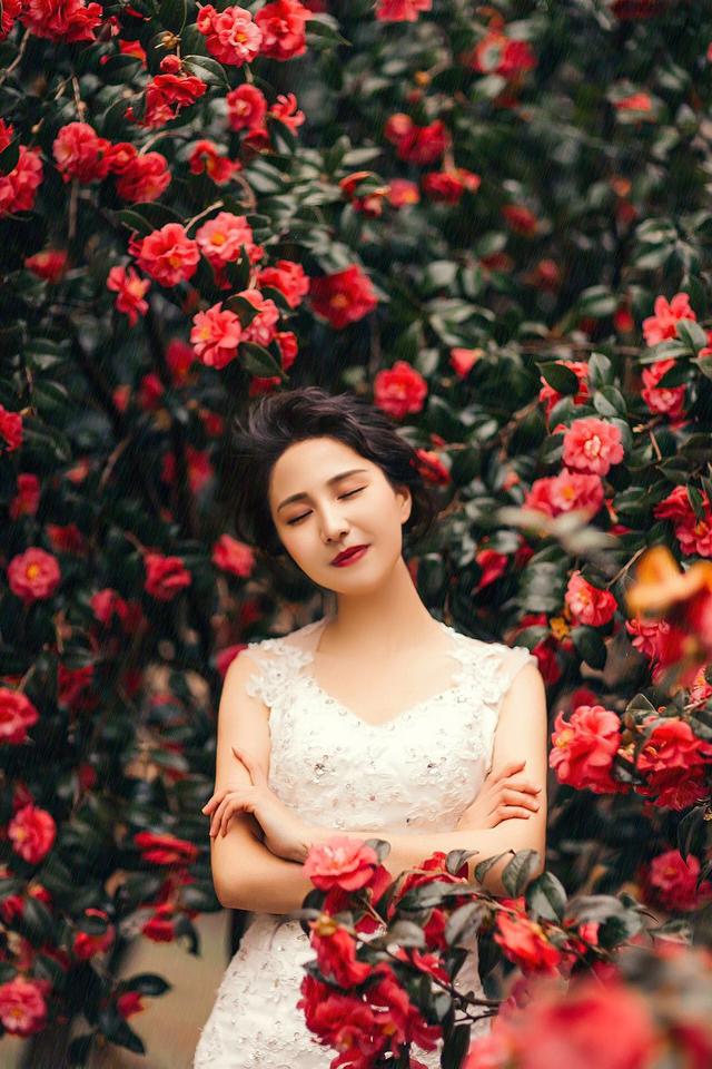 中年女士虽然更加成熟有韵味,但脸上难免会有些小瑕疵,到一些花海或树林里旅行拍照时,不妨借助这些花花草草来挡住半边脸,这样既能融入场景之中,让您更显自然,还能遮脸显瘦。