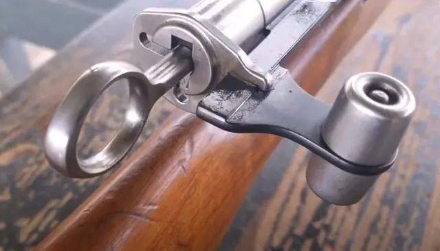 我们看别的步枪的保险呢,其实就是个调节杆,用手直接拨动就可以了。而K31的保险则是一个环状,主要原因是天气问题。在瑞士的山上,气候比较冷,士兵需要戴手套,如果用毛瑟系那些调节杆,则很不方便。如果是个圆环,手指直接套进去就可以操作了。其直拉式枪机,也有一部分是这方面的原因的。