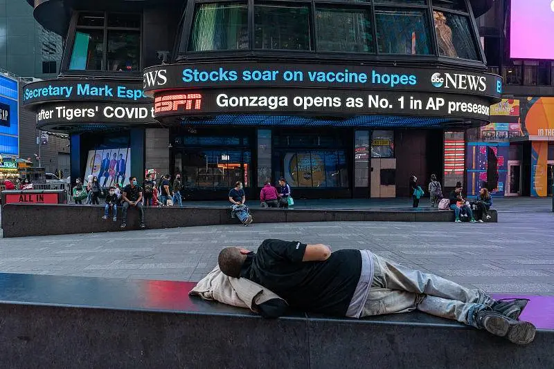 11月9日,美国纽约,纽约时代广场上,电子屏幕上写着“对疫苗的期望使股市飙升”。图源:CFP