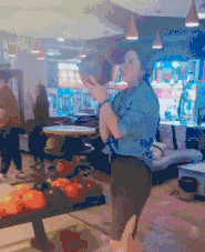 美女完美的避开了所有球瓶!