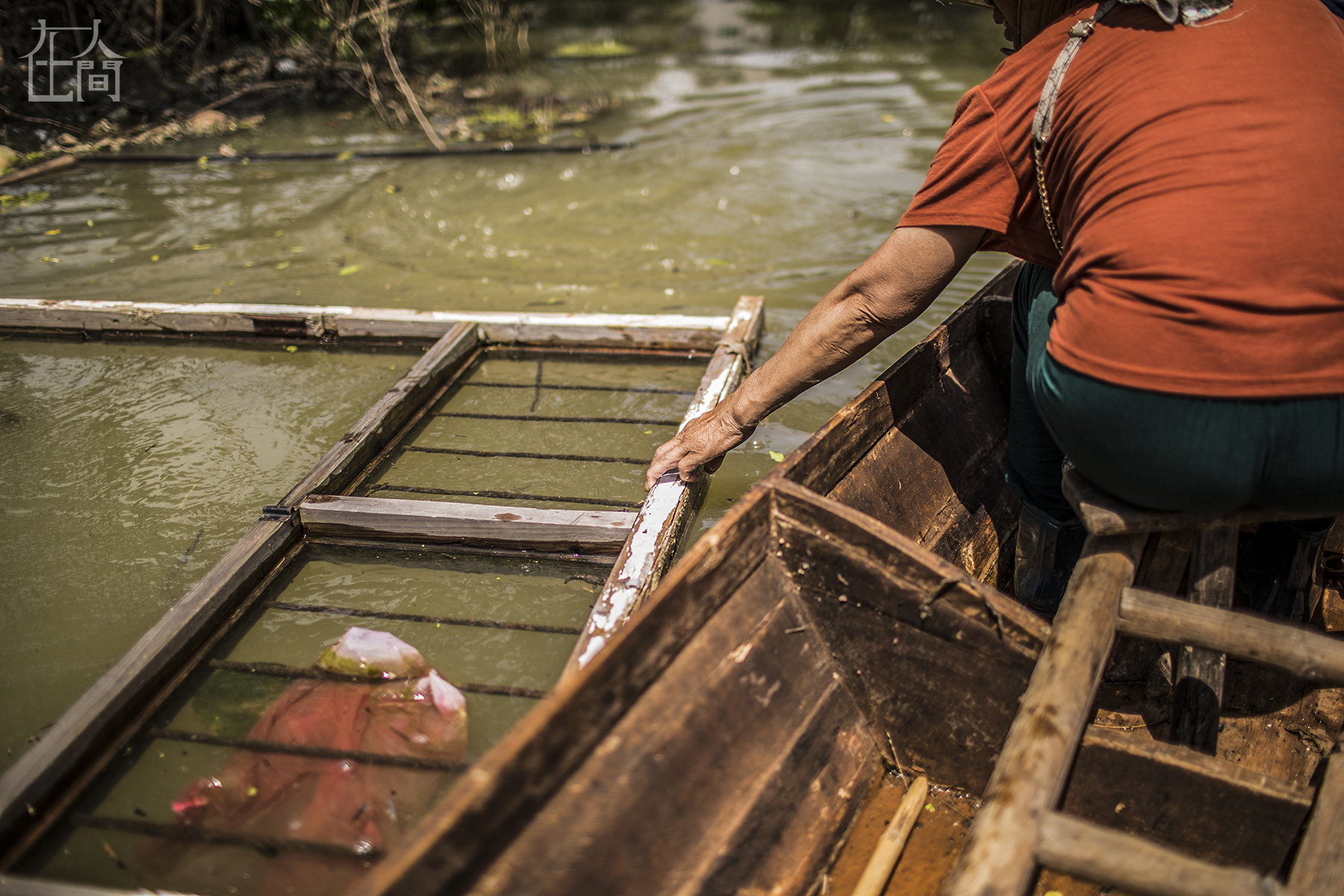 邵仁妹老宅的门被冲到离家几十米外的“湖面上”,她紧握着门框,试图把它拉近家里一点,但没有成功。