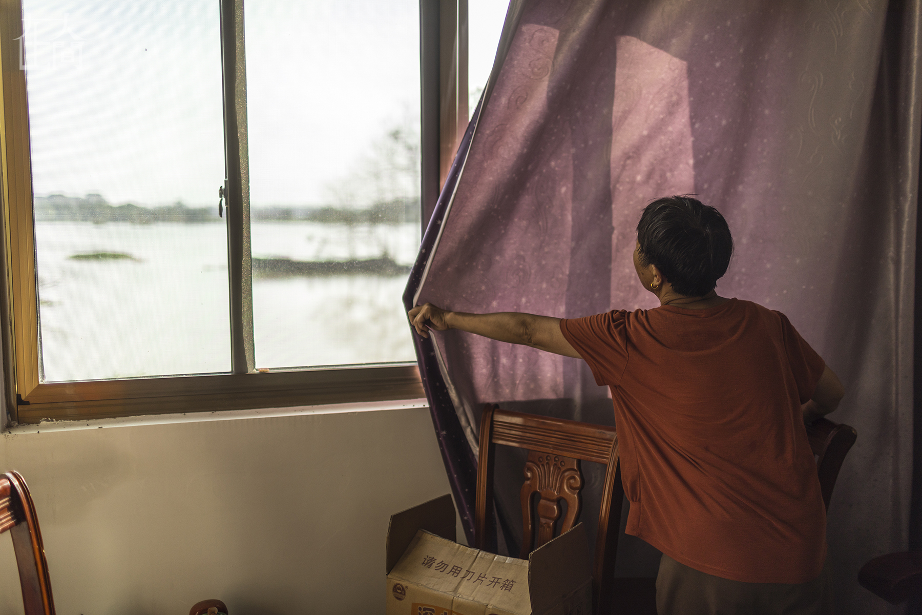 现在,房子泡在洪水中,没法住了。她只好搬到地势较高的舅舅家里暂时住下。弟弟、弟媳和其他村里人,偶尔会陪她回到房子里收拾家具和粮食等物品。