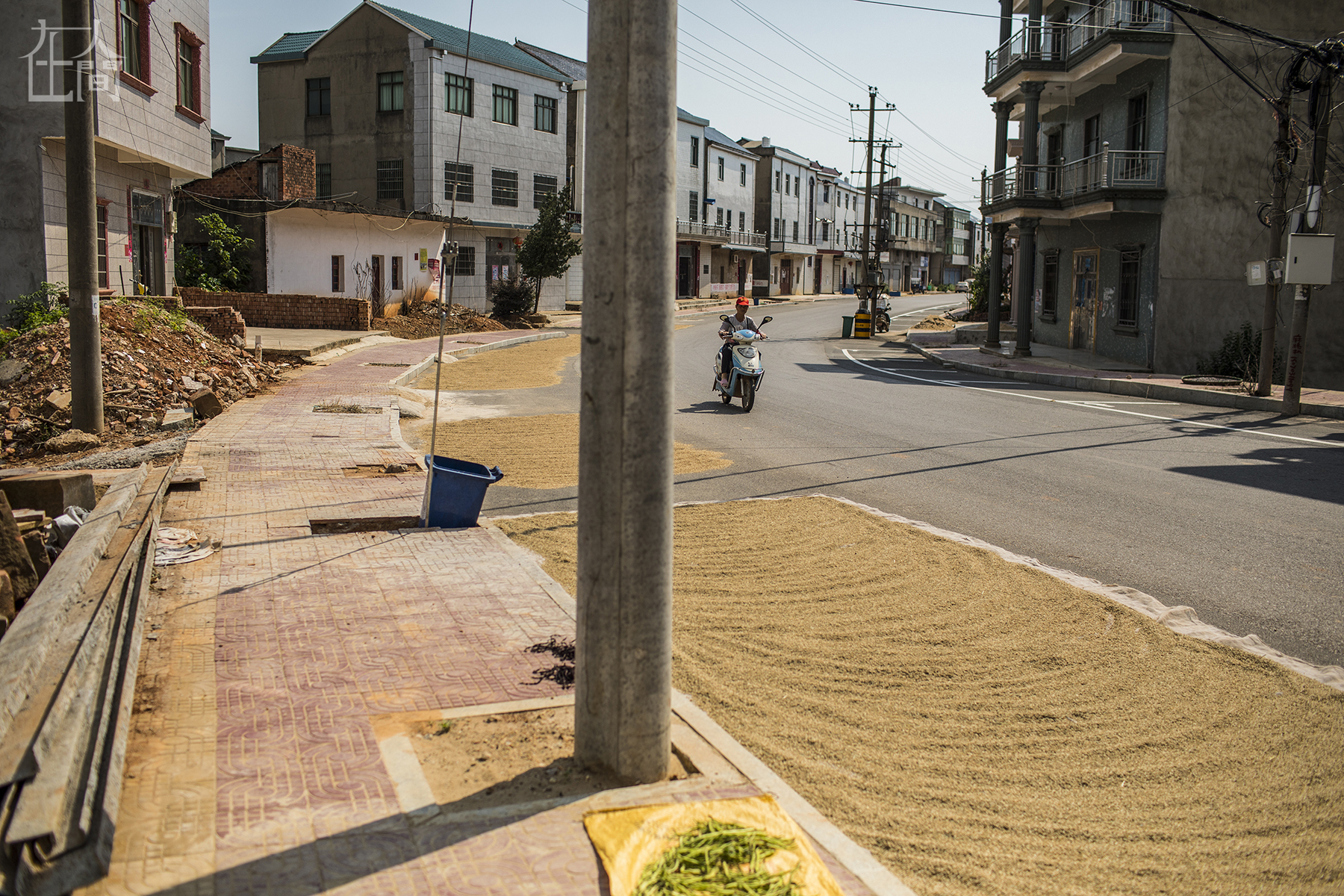 新村因为地势比较高,房子基本上没有受洪水影响,农民抓紧收割高处的水稻,也躲过了一劫。