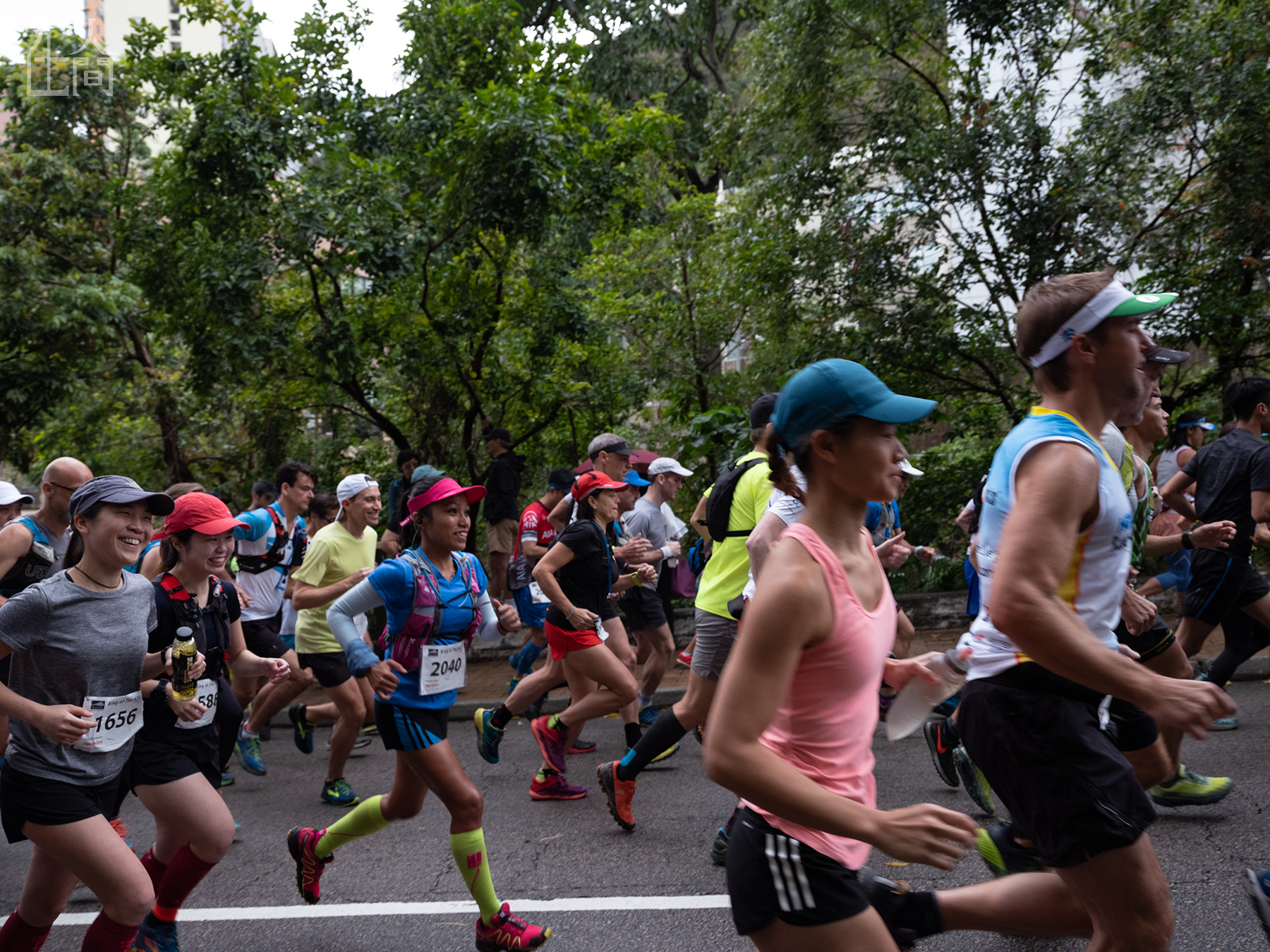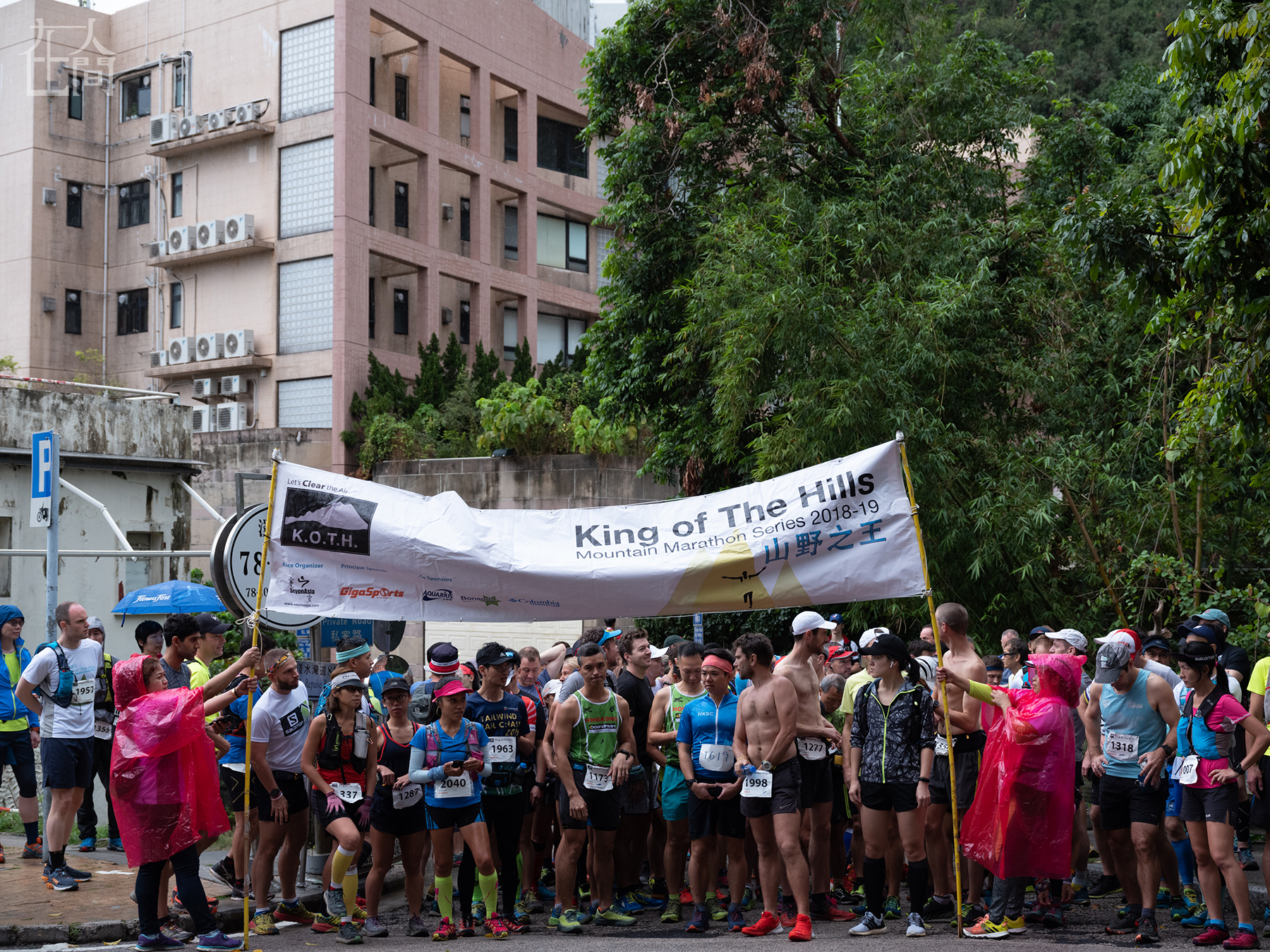 杰比和其他跑者一起在香港“山野之王”马拉松比赛中奔跑。