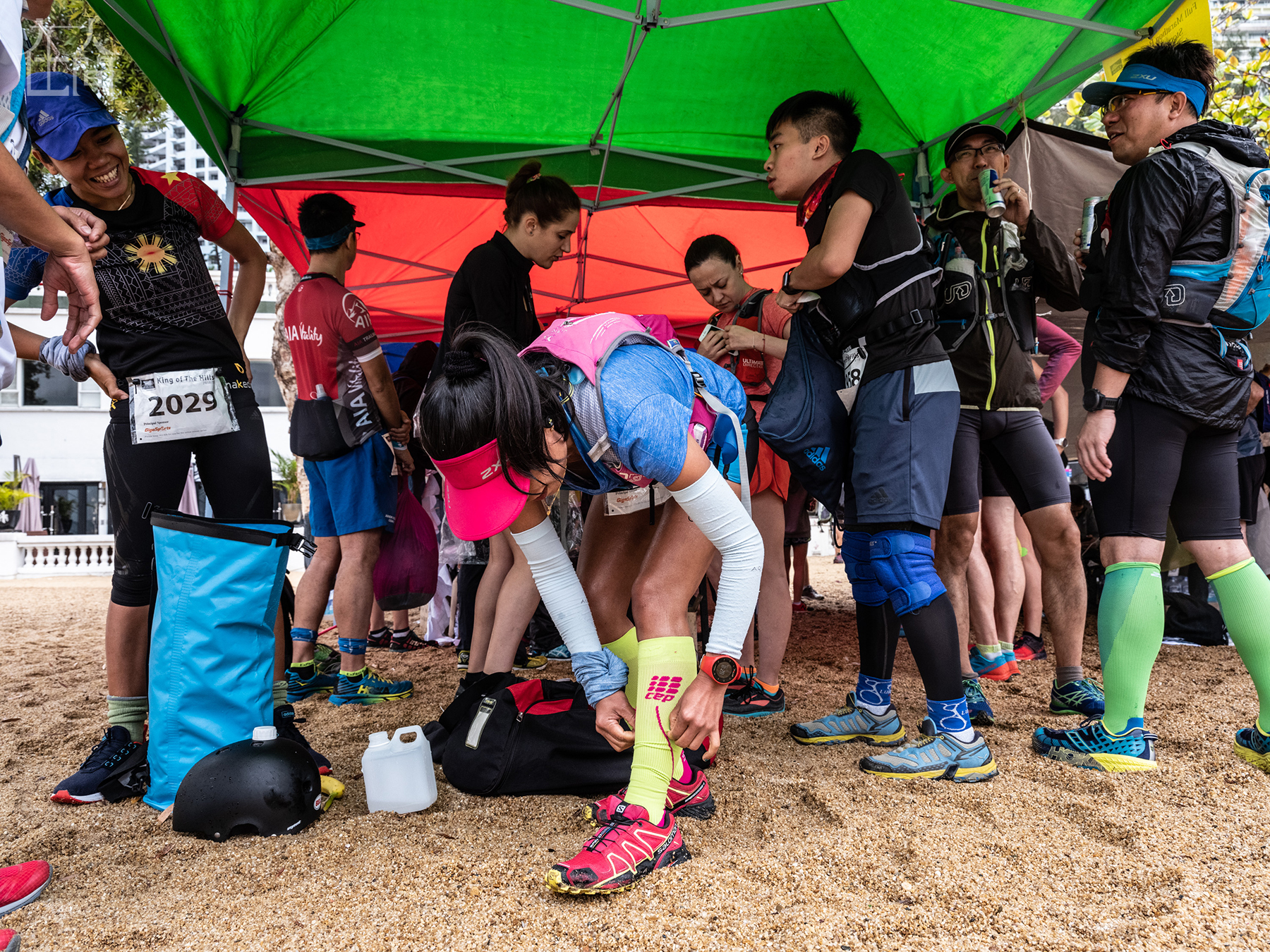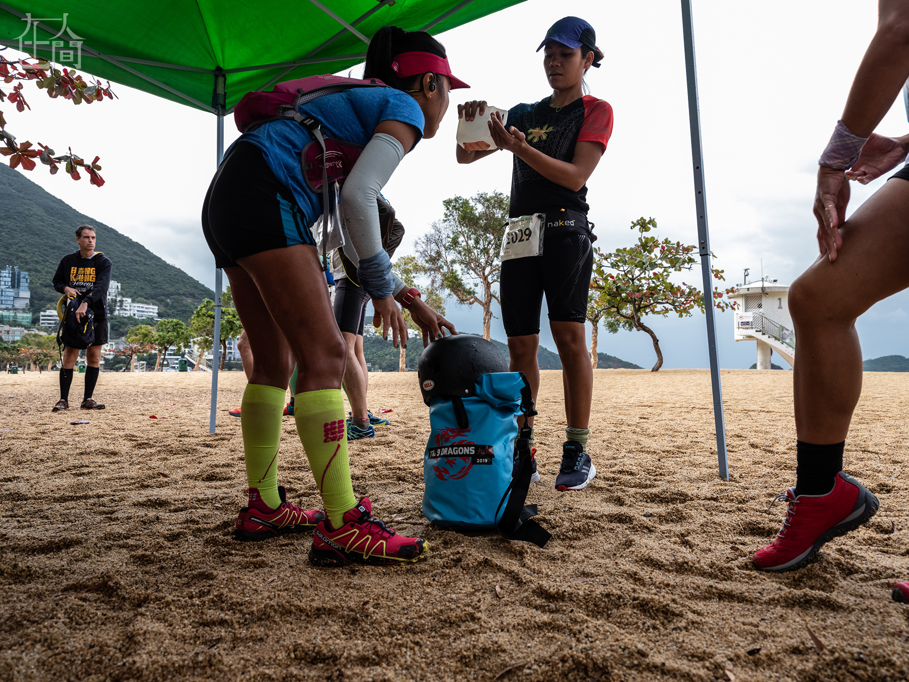 对杰比来说,“山野之王”系列的越野跑,也提供给她离开水泥森林,享受自然风光的机会。 图为2019年3月3日,香港。杰比和其它跑者在等待香港“山野之王”马拉松比赛的开始。