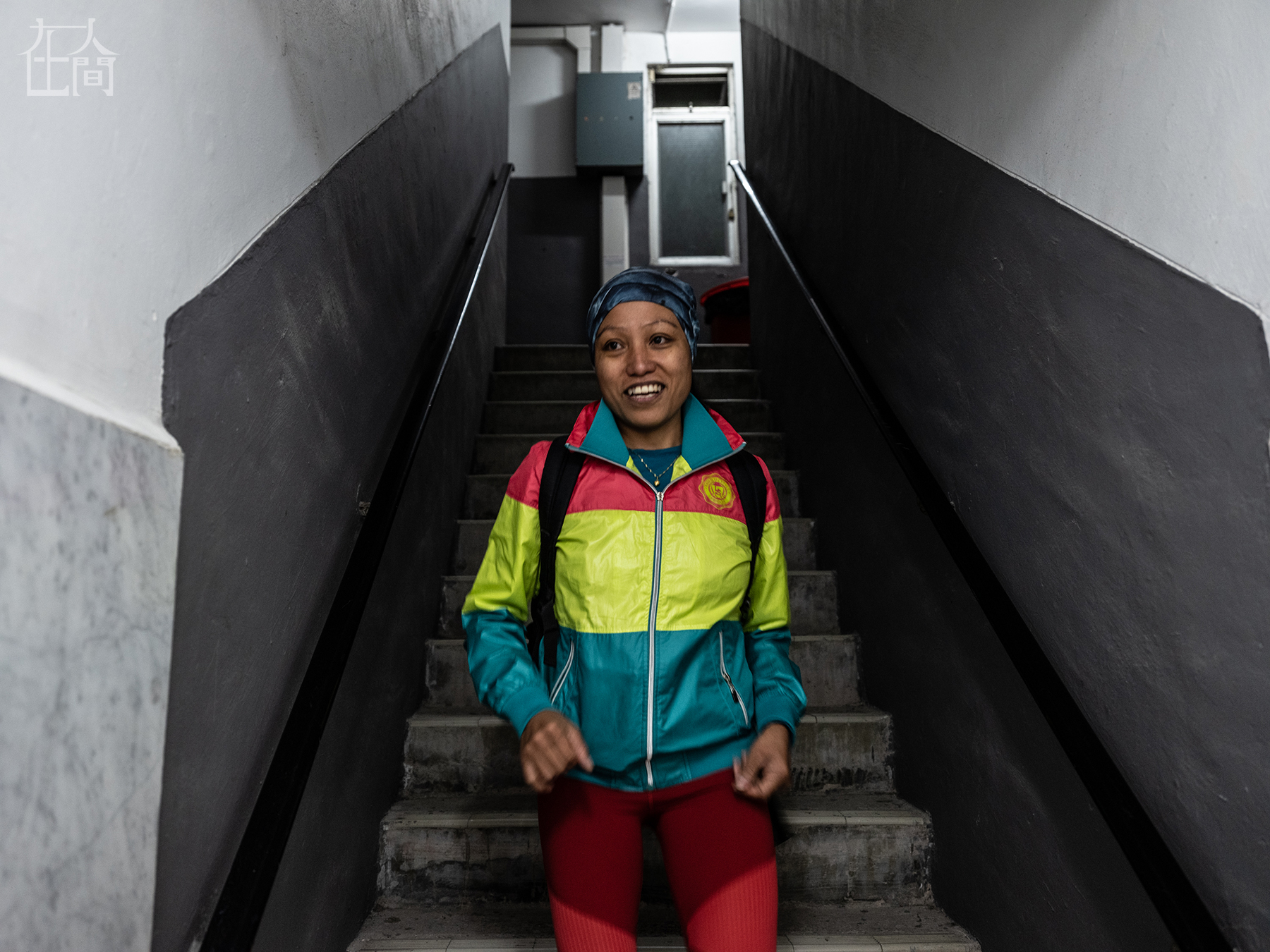 2019年3月3日,杰比走出电梯。 这天,杰比刚刚参加完一个理财课程的结业典礼,这是由香港一家非营利组织为外来务工人员提供的在线教育课程。杰比希望将来有机会从事和户外运动相关的工作。