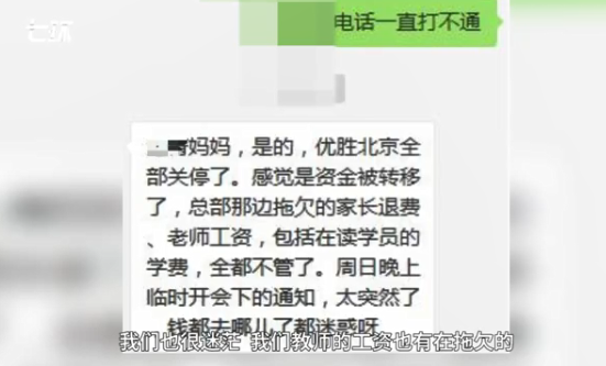 但几位优胜教育的老师都表示,他们已经被拖欠了几个月的工资。