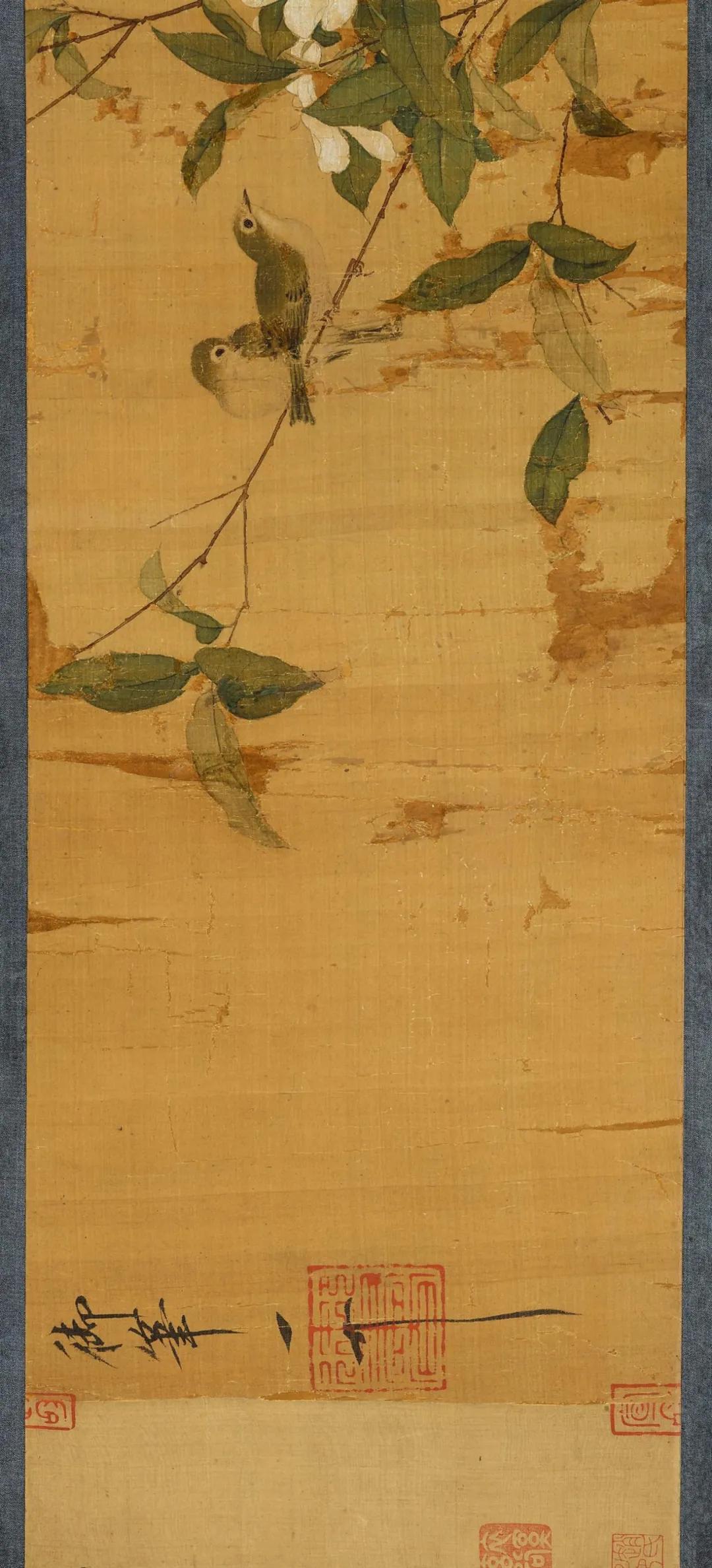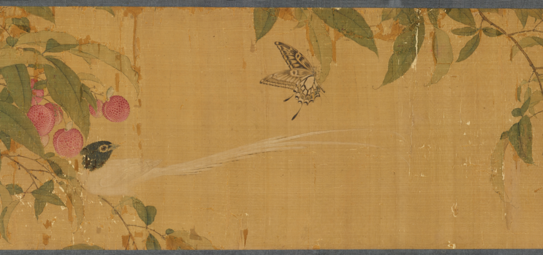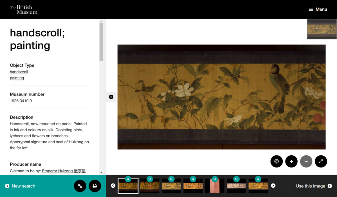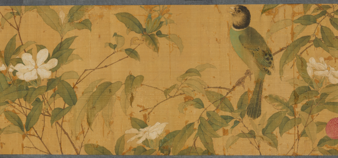 早在10年前,大英博物馆官网放出的藏品资料(Emperor Huizong Gardenia and Lichee with Birds),展示了画卷中部的一小截,标注为明代托名宋徽宗赵佶的仿作。 《自然的概念:一个中欧的跨文化视角》