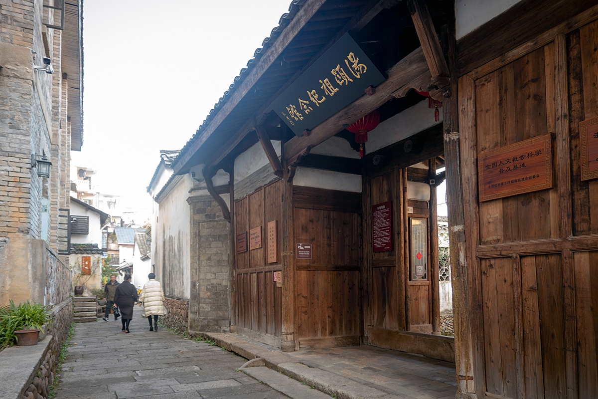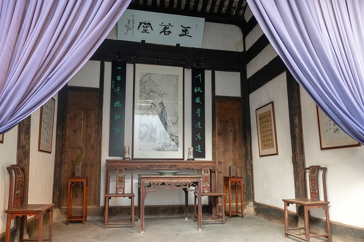 与陈家大屋相邻的一处晚清古民居,共同组成了汤显祖纪念馆。在这幢落院的后院,有一座仿建的明代风格戏台:姹紫嫣红。平日里,这里也是昆曲爱好者们登台献唱的地方。