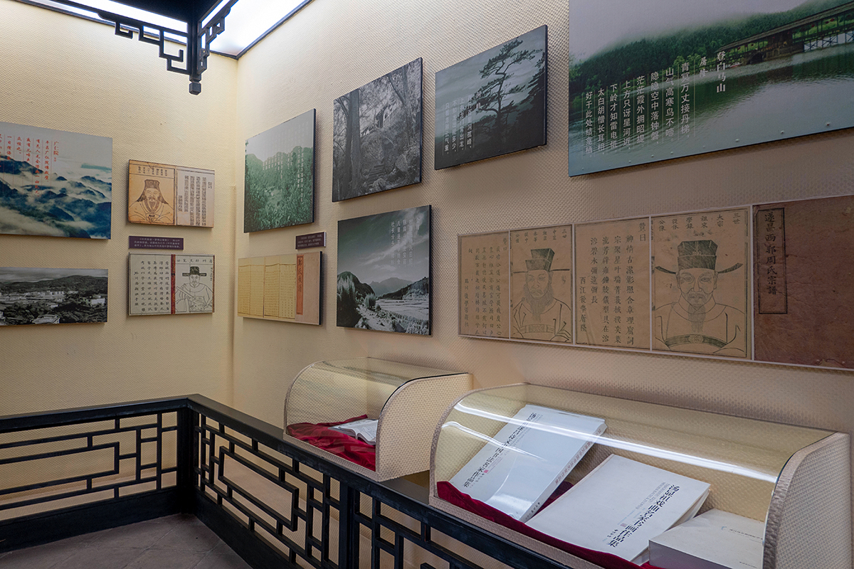 经回廊到达分布在两侧的展厅,展厅内介绍着汤显祖的生平,以及在遂昌的政绩,还有他的艺术创作和后人的评论研究。小小的展厅里,整齐陈列着文人墨迹、旧时书简、舞台照片等等。过往的岁月隔着几十、几百年的物是人非,在这里重聚,还原出汤显祖的一生。