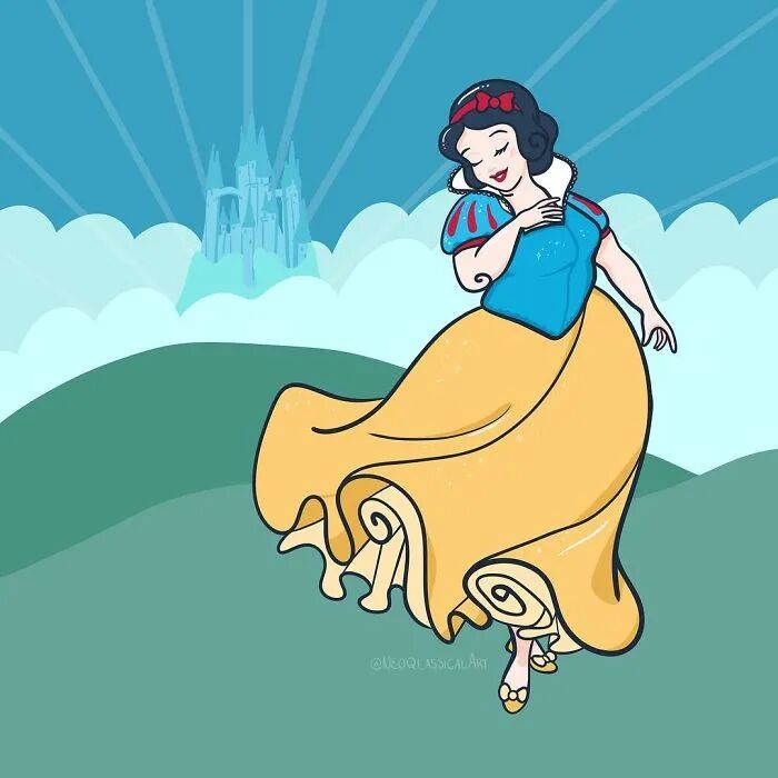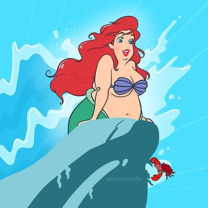 如果迪士尼公主们是大码女孩(所谓的微胖),不知道故事会怎么发展呢?来看网友绘制的想象图: