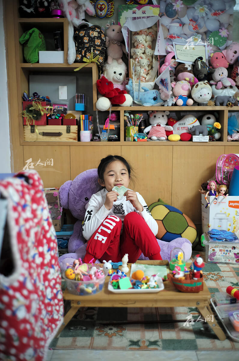 家中客厅中的一角,堆满了各种曼齐喜欢的洋娃娃。