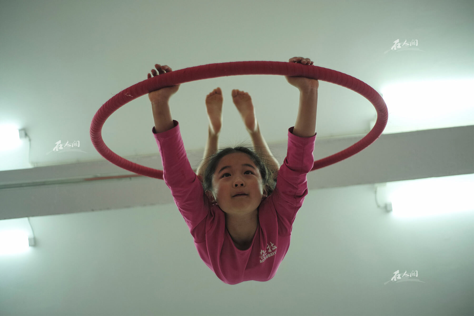 曼齐在舞环上做出飞翔的动作。母女之间会互相写信,窦曼齐也会在信中抱怨:“不想上学,想回家。”但窦琼发现,今年的五一节之后,当窦琼在信中问她,开心吗?窦曼齐在一封回信里写着:“还行吧。”窦琼也不知道,女儿为何突然转变了态度。