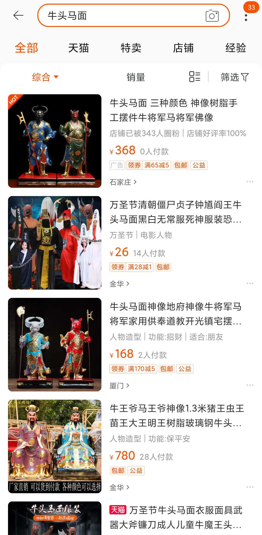 打开电商网站,搜索牛头马面。付款的人并不多。
