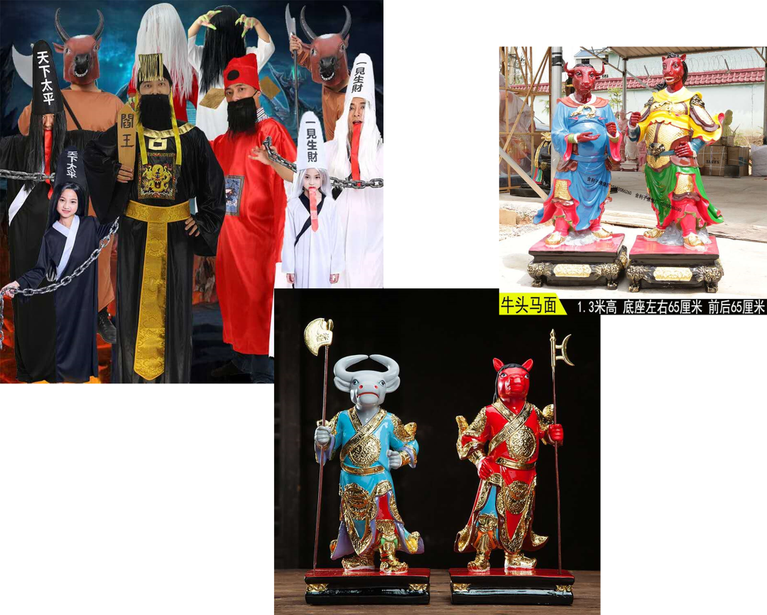 相关商品也只有三类,分别是cosplay服装、小型塑像和大型塑像。在外观方面,三种牛头马面倒是一样沙雕↓