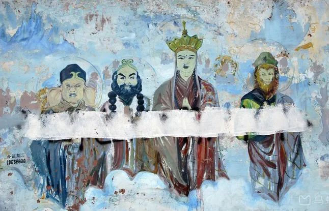 某家西游记宫的壁画被岁月从墙上剥落