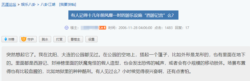 电视台不再疯狂放《西游记》,牛头马面逐渐成了前浪们内心角落的记忆。偶尔有人会在某些网站上提及对本地西游记宫的恐怖记忆,让后来人细细品味。