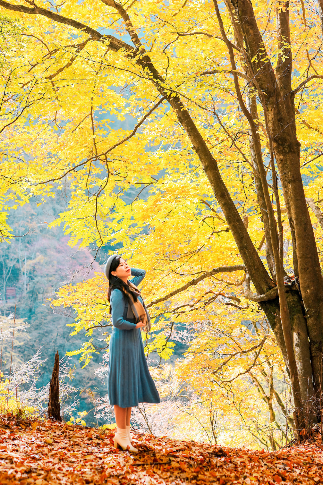 以远景的景别拍摄大场景时,可以让身材和颜值对照片的整体美感的影响程度降到最低,只要背景足够好看,这个技巧都能用起来,像下面的女士一般,侧身站着场景中欣赏风景,不用什么姿势、技巧的修饰,以景衬人,人景合一,别有一番美感。