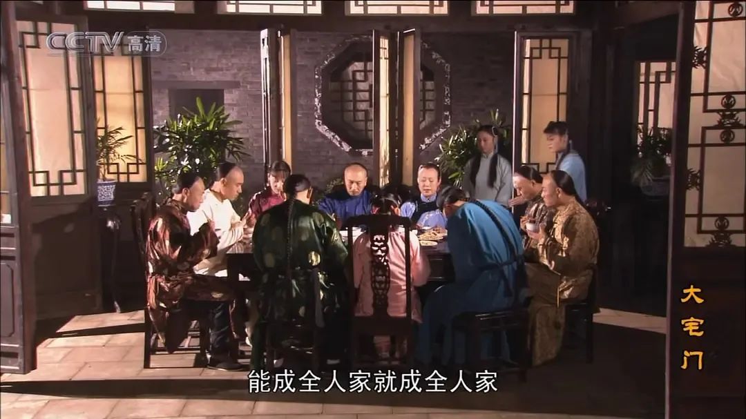 这「情」是典型的中国人的情。《大宅门》中屡次出现一大家子人聚在大桌前吃饭的场面,那就是文眼。像《教父》中的桌下握枪,或者《权力的游戏》中被儿子射死在厕所里的泰温,是绝不可能出现在中国的市民剧中的。我们中国人「一家人最紧要就係齐齐整整」,围桌吃饭。此中情怀,深思令人无奈,也令人泪下。