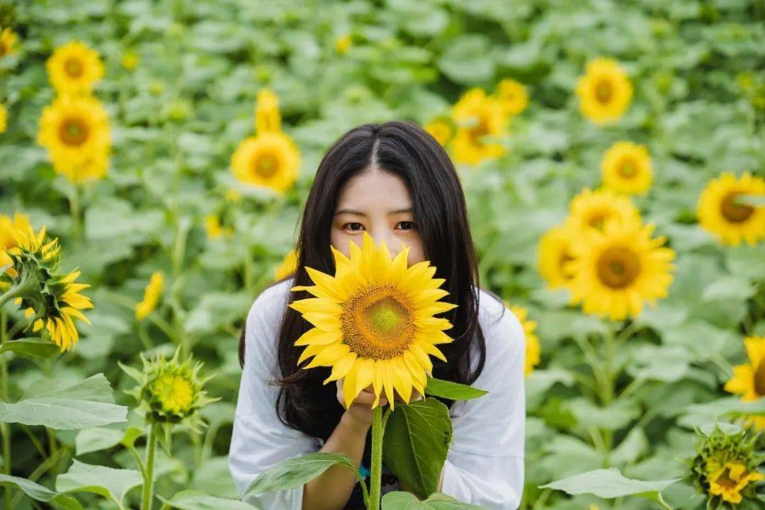 PS:这里的向日葵植株属于较矮的品种,想要拍到满意的合照,要适当蹲低哦!