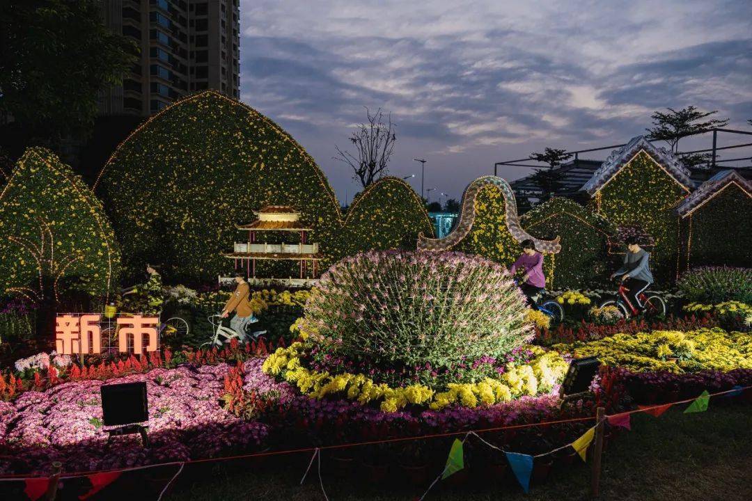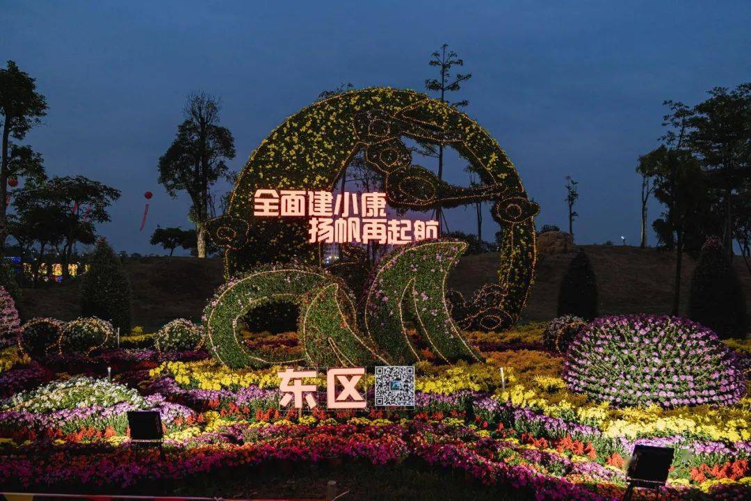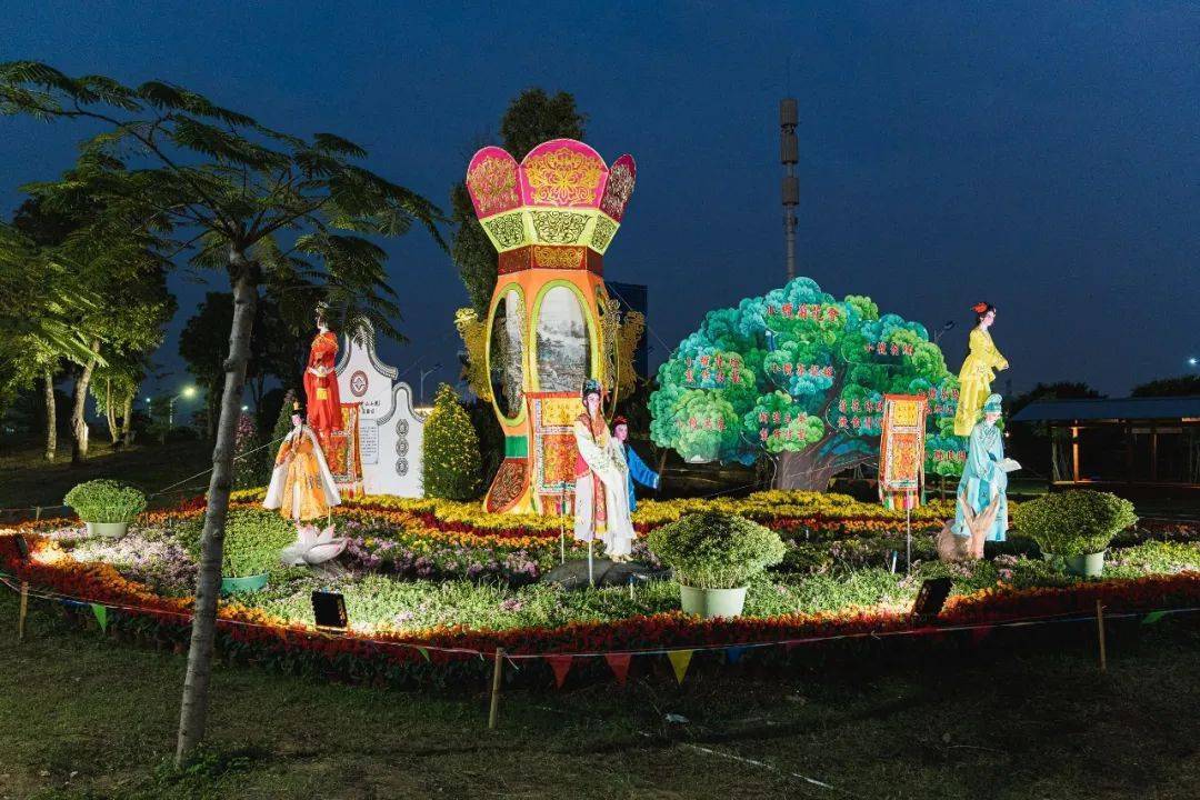 这里还设了25个菊花造景…..连接成“小康路”美好寓意的观展路径,体现了小榄人们对美好生活的向往和追求,亲测,晚上亮灯后拍的照片会更美哦~