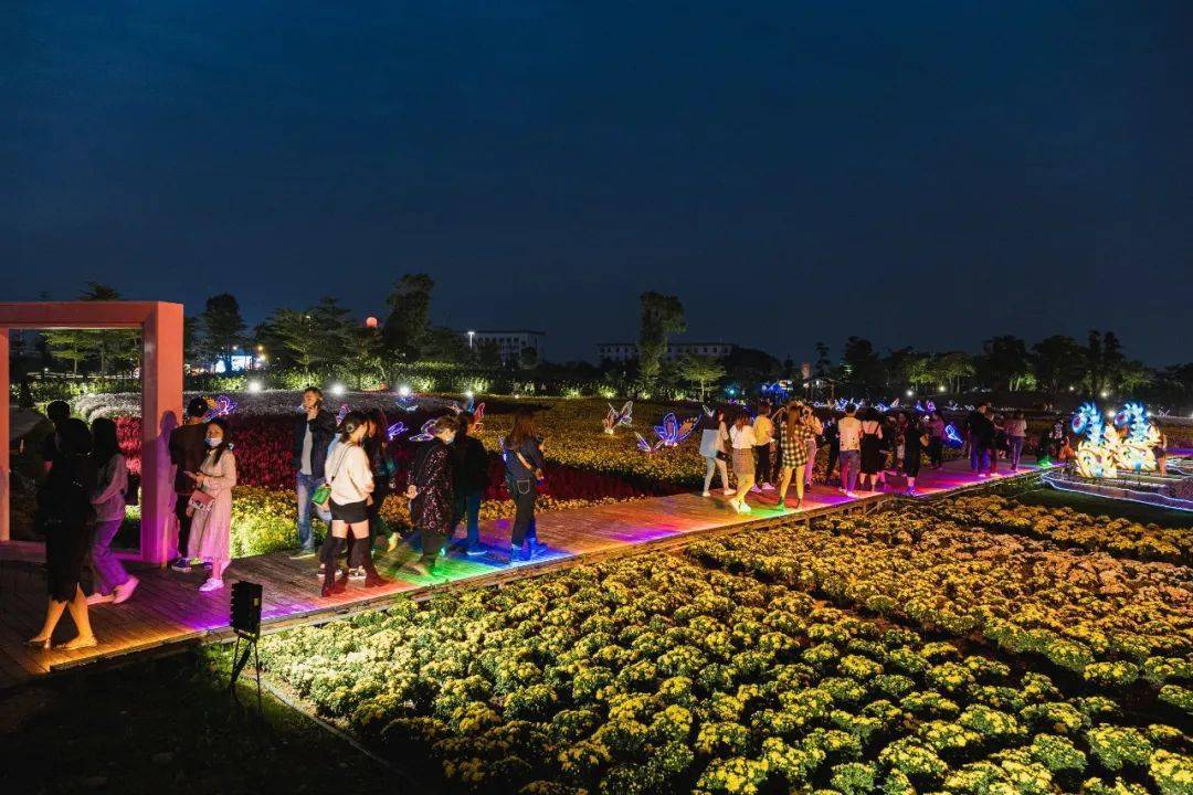 晚上的花海会打开照灯,朦朦胧胧的花儿显得尤为娇羞,这样的美景同样吸引人,看看现场人气多火爆,莫名有逛花街的feel~哈哈!