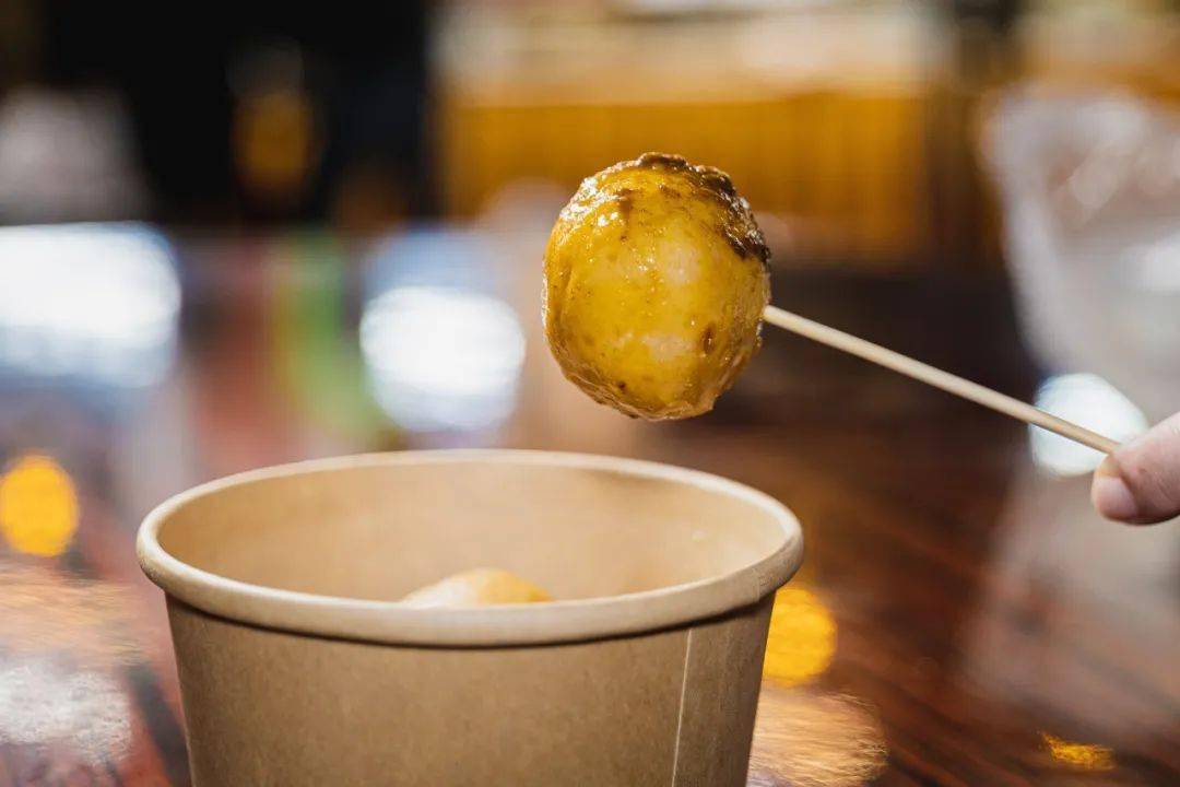 鲮鱼球外皮焦黄,口感鲜甜柔韧,体型较大,一粒要咬三口才可以吃完,啖啖肉,超过瘾。