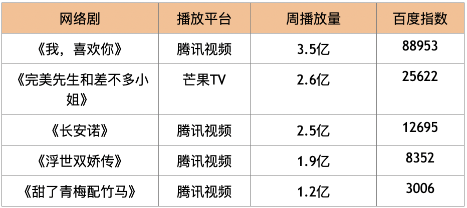 网剧收视率周平均top5