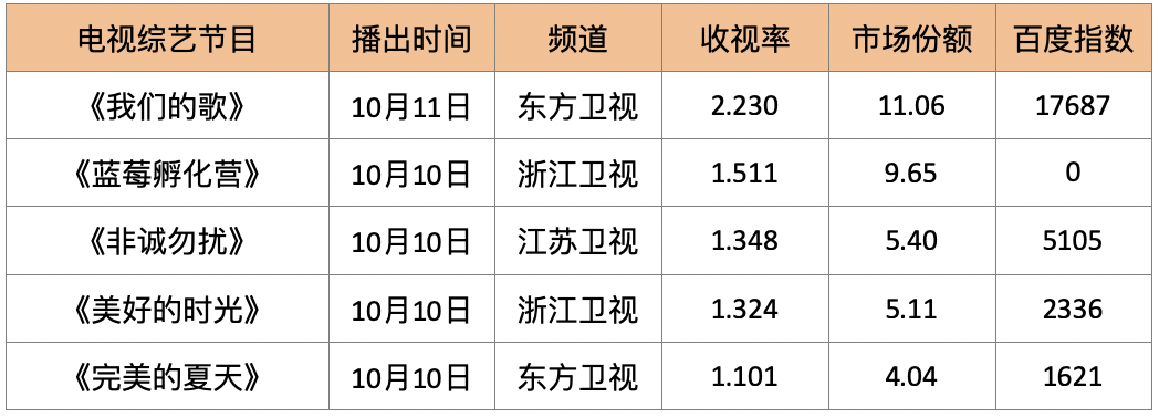 电视综艺收视率Top5