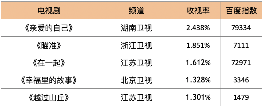 电视剧收视率周平均top5