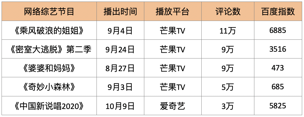 网络综艺收视率Top5